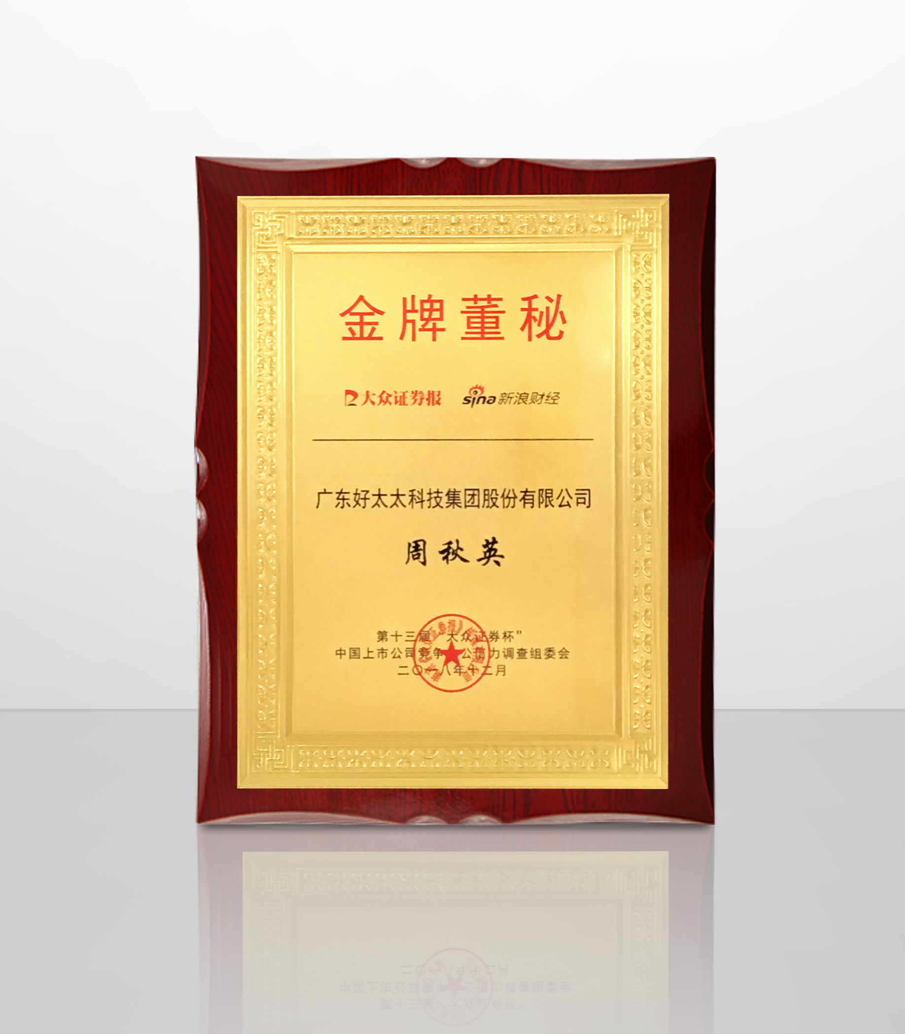 由《大众证券报》主办,新浪财经协办的“2018中国A股上市公司创新指数排行榜发布暨第十三届中国上市公司竞争力公信力调查评选颁奖高峰论坛”在南京隆重举行。本次峰会以“鼎新赋能”为主题,汇聚中国数百家优秀上市公司及投资机构,邀请学界专家、政府官员齐聚南京,从全球视野、专家视角共话财经宏图与创新愿景。峰会上好博集团(603848)荣获“最佳资本新锐奖”,集团董秘周秋英女士荣获“金牌董秘”称号。
